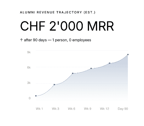 First revenue within 90 days — avg. CHF 2'000 MRR after the Bootcamp